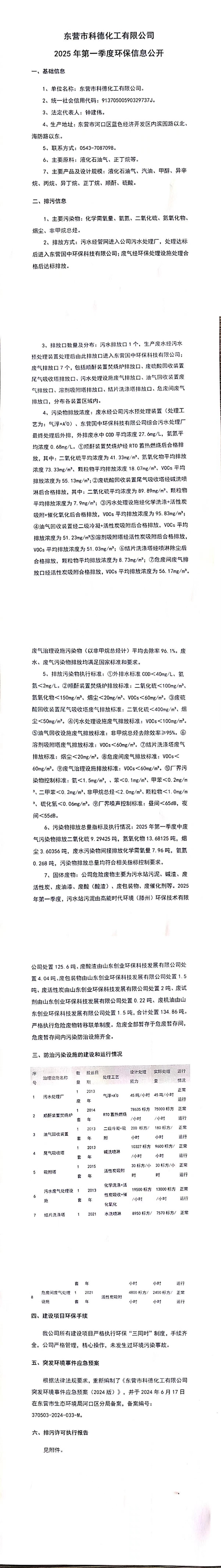 東(dōng)營市科德化工有限公司2025年第一季度環(huán)保信息公開